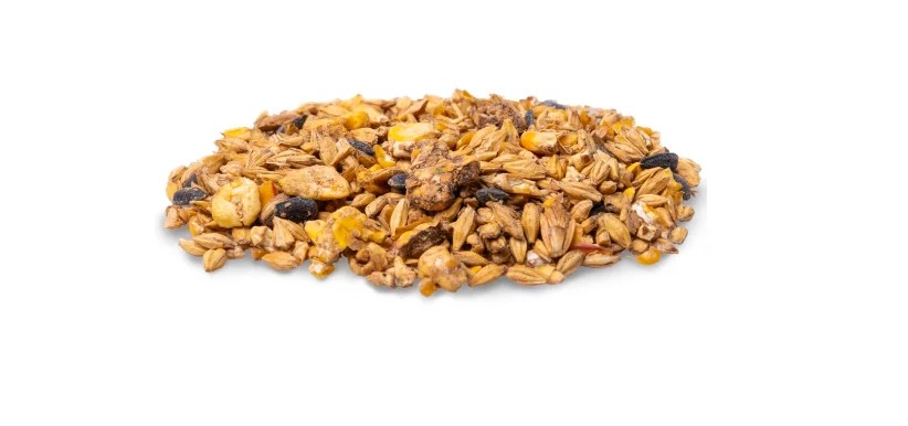 Ječam (prženi, valjani), kukuruz (prženi, valjani), sirup šećerne repe, crni sjemenki suncokreta, laneno sjeme, kalcijev karbonat, emmer, topinambur (fermentirani), monokalcijev fosfat, natrijev klorid (sol), magnezijev oksid