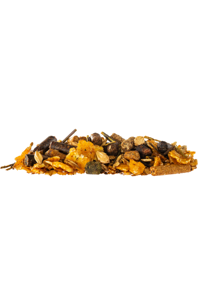 Das Müsli beinhaltet ein Aktiv-Paket mit Vitamin E, Selen und Omega-3-Fettsäuren aus Lein. Diese unterstützen nachhaltigen Muskelzellschutz und dauerhafte Bewegungsfreude. Sowohl der Selen-, Biotin- als auch der Vitamin B1 Gehalt sind speziell auf den erhöhten Bedarf von Leistungspferden angepasst. Wichtige Spurenelemente wie Zink und Kupfer liegen in einem Mix aus organisch und mineralisch gebundenen Formen vor und stehen dem Pferd daher besonders leicht zur Verfügung. Essenzielle Omega-3-Fettsäuren können entzündungshemmend wirken und immunologische Prozesse positiv beeinflussen, wie zum Bespiel den Gelenkstoffwechsel.
