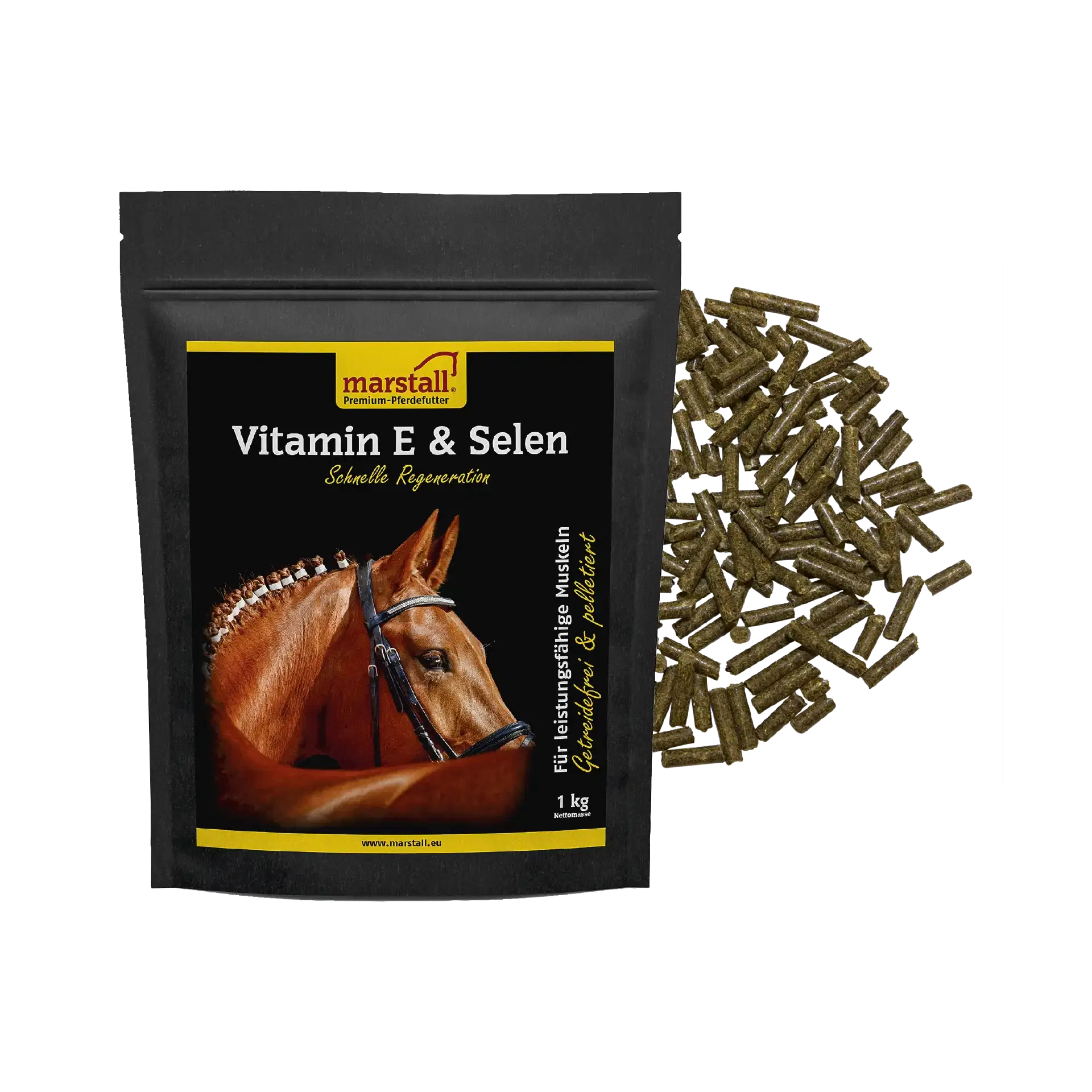 Selen, als wichtiger Baustein von Muskelzellen, und Vitamin E, als zellschützendes Antioxidans, sind unentbehrlich für Muskulatur und Abwehrkräfte. Durch zu geringe Gehalte dieser beiden Komponenten im Grundfutter kann ein Mangel entstehen. Dieser äußert sich beispielsweise durch lange Regenerationszeiten nach Belastung, durch Taktfehler und Unrittigkeit oder durch eine verspannte Hals- und Rückenmuskulatur bis hin zu Herzmuskelschäden.