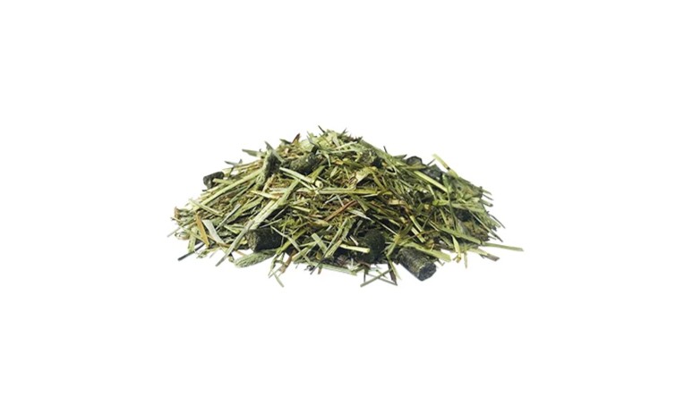 Luzerne (hochtemperaturgetrocknet, geschnitten), Timothee, Graspellet, Weizenstroh, Leinsamenöl