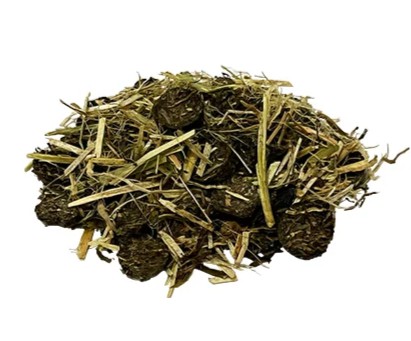 Heu (flocken), Apfelpülpe (getrocknet), Luzerne, Leinsamenöl, Karottenflocken, Weizenstroh, Apfel (getrocknet), Kräutermischung, Getrocknete Rote Beete, Calciumcarbonat, Natriumchlorid (salz)