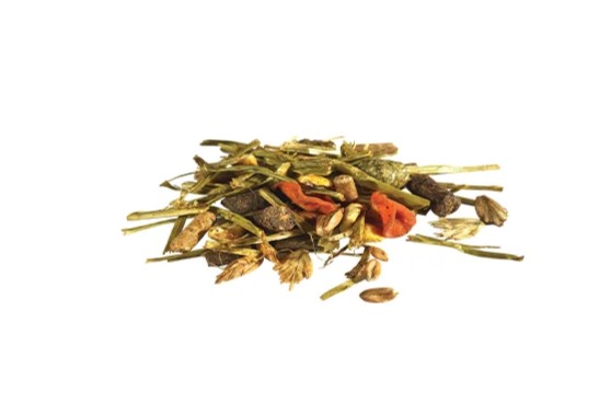 Luzerne, Weizenfutter, Dinkel (flocken), Dinkelspelzen, Weizen, Sojabohnenflocken, Rohrmelasse, Apfelpülpe (getrocknet), Calciumcarbonat, Sojaöl, Natriumchlorid (salz), Gerste (gepufft), Karottenflocken, Magnesiumoxid, Leinsaat, Monocalciumphosphat, Mais (gepufft), Weizenkleie, Zichorienpülpe, Sonnenblumen-Extraktionsschrot, Leinsamenöl