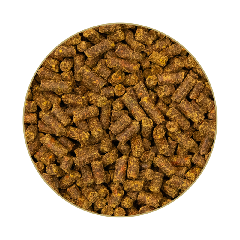 Maiskeime, Knoblauch, Karotten, Gerstenflocken, Bierhefe, Ölmischung kaltgepresst (Lein-, Sonnenblumenöl) 3,5 %, Seealgenmehl