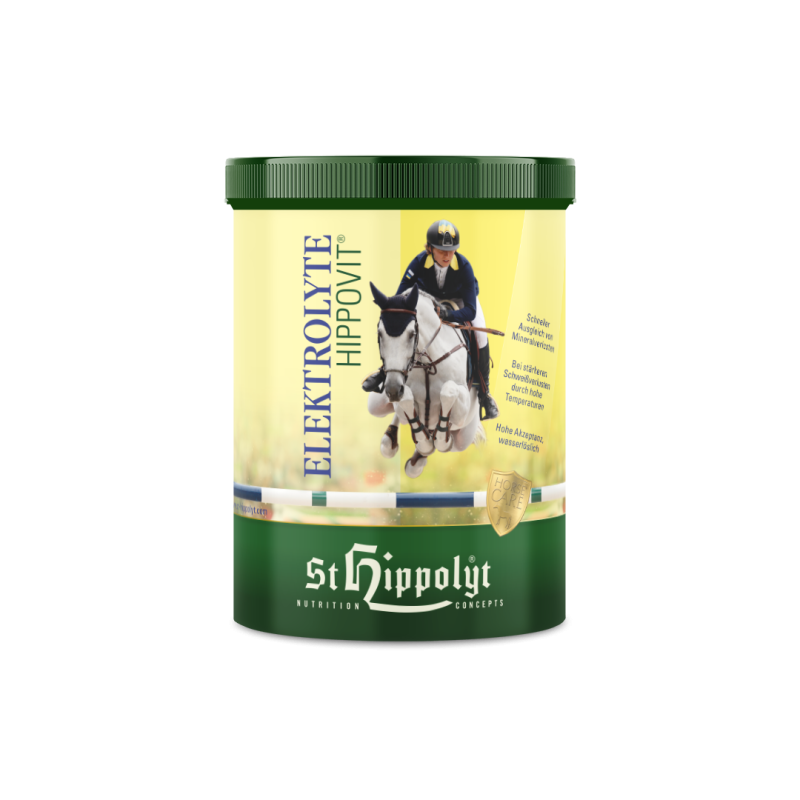 St. Hippolyt Elektrolyte (wasserlöslich) sorgen für einen mineralischen Ausgleich nach starkem Schweißverlust bei Höchstleistungen, Transporten oder Stress. Durch verstärktes Schwitzen kühlen Pferde ihren Körper ab. Dabei verlieren sie nicht nur Wasser, sondern auch wertvolle Elektrolyte. Mögliche Anzeichen für einen Elektrolytmangel sind Leistungsminderung, Muskelprobleme (Bsp. Tying up) und Milchsäurebildung in den Muskeln. Sommerliche Temperaturen und hohe körperliche Belastung erhöhen den Elektrolytverlust. Eine regelmäßige, ergänzende Fütterung von Elektrolyten beugt Mangelerscheinungen vor, selbst bei heißen Temperaturen und erhöhte Leistung.