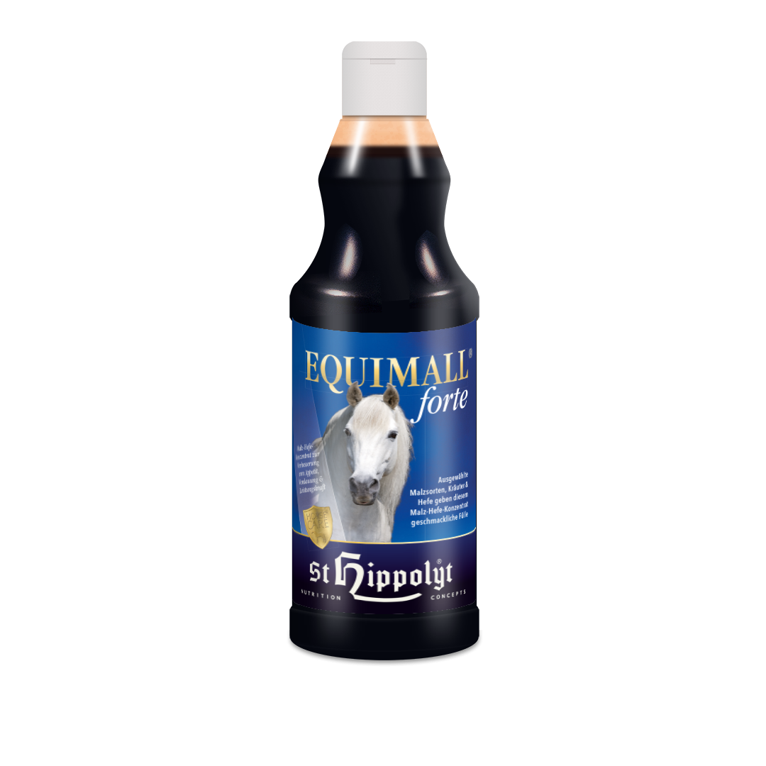 St. Hippolyt Equimall forte ist ein konzentrierter, flüssiger Malz-Hefe-Extrakt aus fünf verschiedenen Malzsorten, feinen Kräutern und lysierter Hefe zur Appetitsanregung.