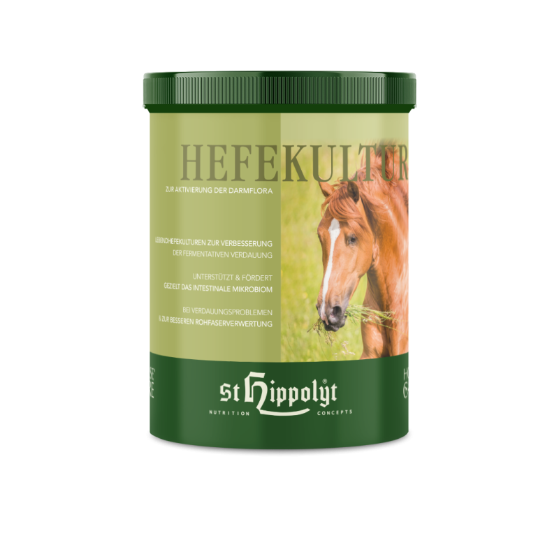 Eine effektivere Verdauung von Rau- und Weidefutter wird durch eine harmonische Darmflora begünstigt und die Aufnahme der Wirk- und Nährstoffe ins Blut gefördert. Eine Fütterung von Lebendhefekulturen und Mikronähstoffen über einen längeren Zeitraum erhöht das Ernährungsniveau sehr. St. Hippolyt Hefekultur eignet sich bestens für schwerfuttrige und alte Pferde, bei Verdauungsproblematiken, im Fellwechsel, zur Förderung des Hufwachstum und für hart arbeitende Sportpferde, Zuchtstuten sowie Fohlen.