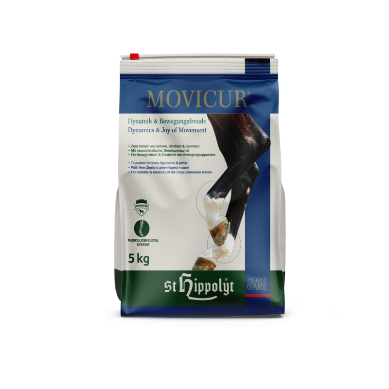 St. Hippolyt Movicur enthält die neuseeländische Grünlippmuschel und unterstützt Sehnen, Bänder und Gelenke. Zusatznahrung für Sport-, Jung-, und Seniorenpferde. In letzter Zeit wird immer deutlicher, dass die Entstehung von Gelenk- und Sehnenproblemen sowie allgemeinen Bewegungsstörungen von mangelhafter Ernährung begünstigt wird. Eine verbesserte, freie Beweglichkeit kann von einer passenden Spurenelement- und Mineralstoffversorgung, hochwertigen Fettsäuren und antioxidativ wirkenden Vitamine sowie stoffwechselaktiven Kräutern nachweislich positiv unterstützt werden. St. Hippolyt Movicur hat sich seit Jahren bewährt und stellt eine wertvolle Zusatznahrung für Sport-, Jung-, und Seniorenpferde dar.