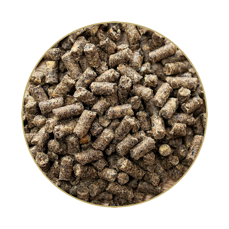 Reiskleie, Leinsamen teilentölt, Rübenfasern, Sojaflocken hydrothermisch aufgeschlossen (GMO-frei), Ölsaatenkeime, Bierhefe
