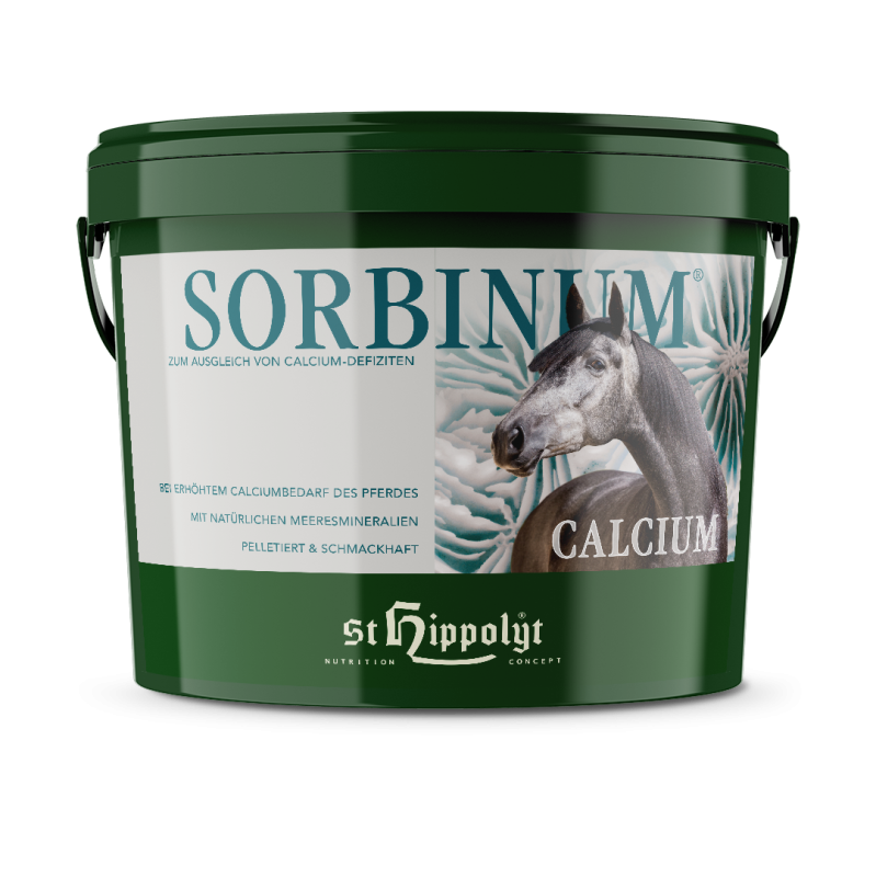 St. Hippolyt Sorbinum Calcium gleicht vorhandene Calcium-Defizite aus, beinhaltet aber auch weitere Mineralien und Spurenelemente. Durch den hohen Gehalt an Calcium eignet sich Sorbinum Calcium auch für Pferde, die große Getreiderationen aufnehmen.