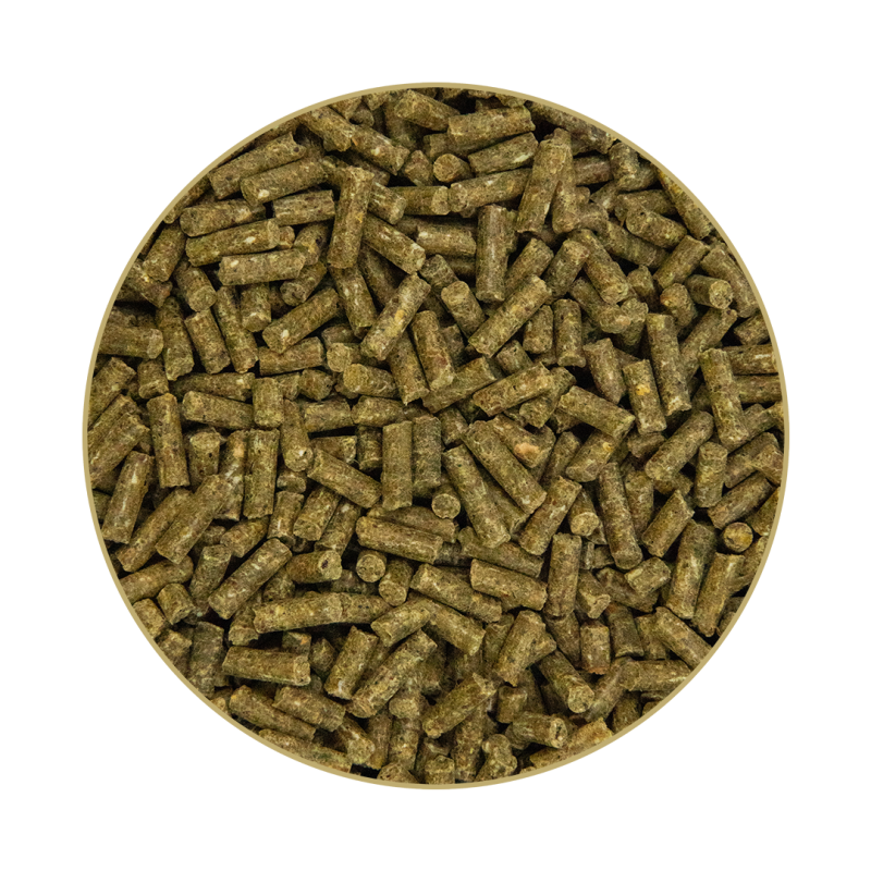 Ca. 50-100 g je 100 kg Körpergewicht und Tag mit dem Krippenfutter vermischt anbieten.