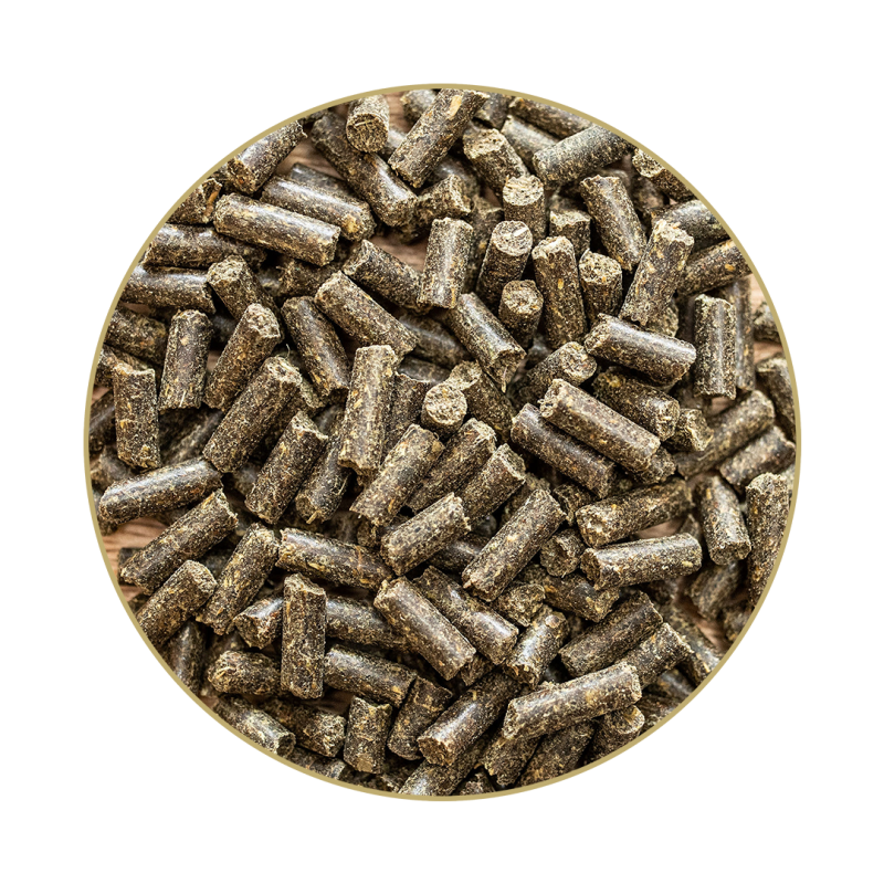 Bierhefe, Luzernehäcksel, Ölsaatenmischung fein gecrackt (Leinsamen, Sonnenblumenkerne) 14 %, Kräuter (Ackerschachtelhalm, Bockshornkleesamen, Brennnessel, Kamille, Kurkuma, Rosmarin) 11 %, Ölmischung kaltgepresst (Lein-, Sonnenblumenöl) 6 %, Hirse, Maiskeime, Malz-Hefe-Würze, Seealgenmehl, Traubenkernextrakt, Himalayasalz, Knoblauch, Gerstenflocken, Spirulina-Algen, Erbsenprotein, Magnesiumacetat, Weizenkleie, Karotten, Essig, Apfelsirup, Salz