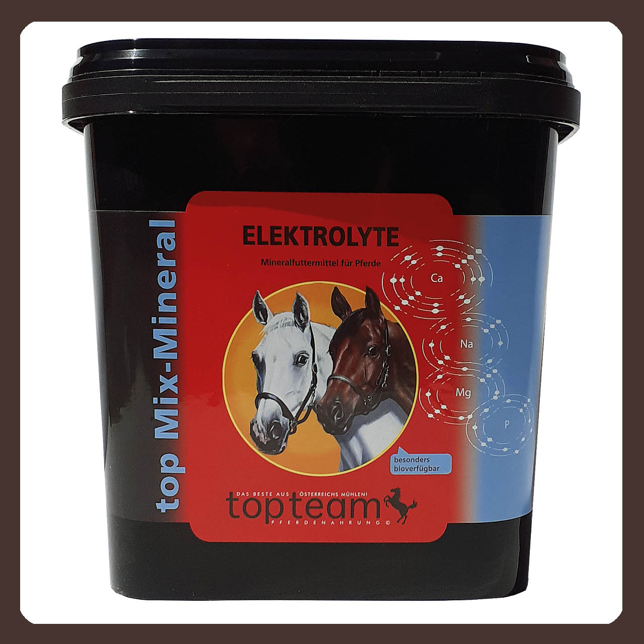 Bei größerer Anstrengung werden durch den Schweiß lebensnotwendige Elektrolyte ausgeschwemmt. Auch krankheitsbedingt kann es zu einer erhöhten Ausscheidung kommen. Mit der idealen Mischung in top Elektrolyte können Sie den Verlust im Elektrolythaushalt Ihres Pferdes schnell ausgleichen. top Elektrolyte sind pulverisiert und wasserlöslich, sodass die exakte Dosierung und Handhabung vereinfacht wird. Ein Messlöffel wird in der wiederverschließbaren Dose mitgeliefert.
