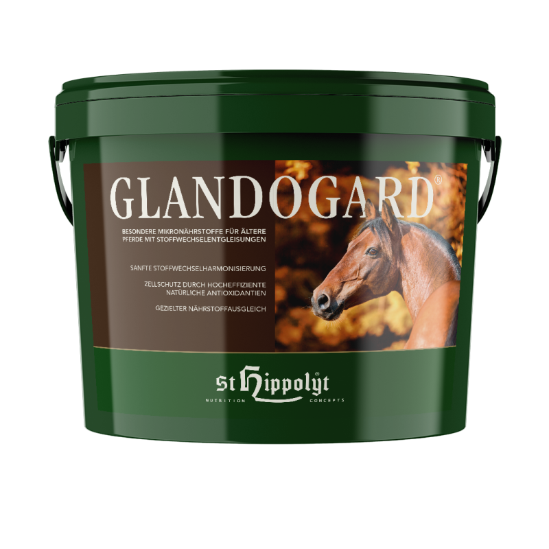 St. Hippolyt Glandogard unterstützt über hocheffiziente natürliche Antioxidantien die körpereigene Radikalstoffabwehr. Mit natürlichem Vitamin E. Ein einst lebensfrohes und vitales Pferd wird mit voranschreitendem Alter zum infektanfälligen und müden Pferdesenior mit langem Fell. Durch wissenschaftliche Erkenntnisse und Praxis ist heute mehr über die fütterungsbedingten Zusammenhänge – wodurch Nährstofflücken gezielt ausgeglichen werden können – bekannt. Glandogard stellt eine wirksame Ergänzung mit natürlichen Funktionsnährstoffen dar.